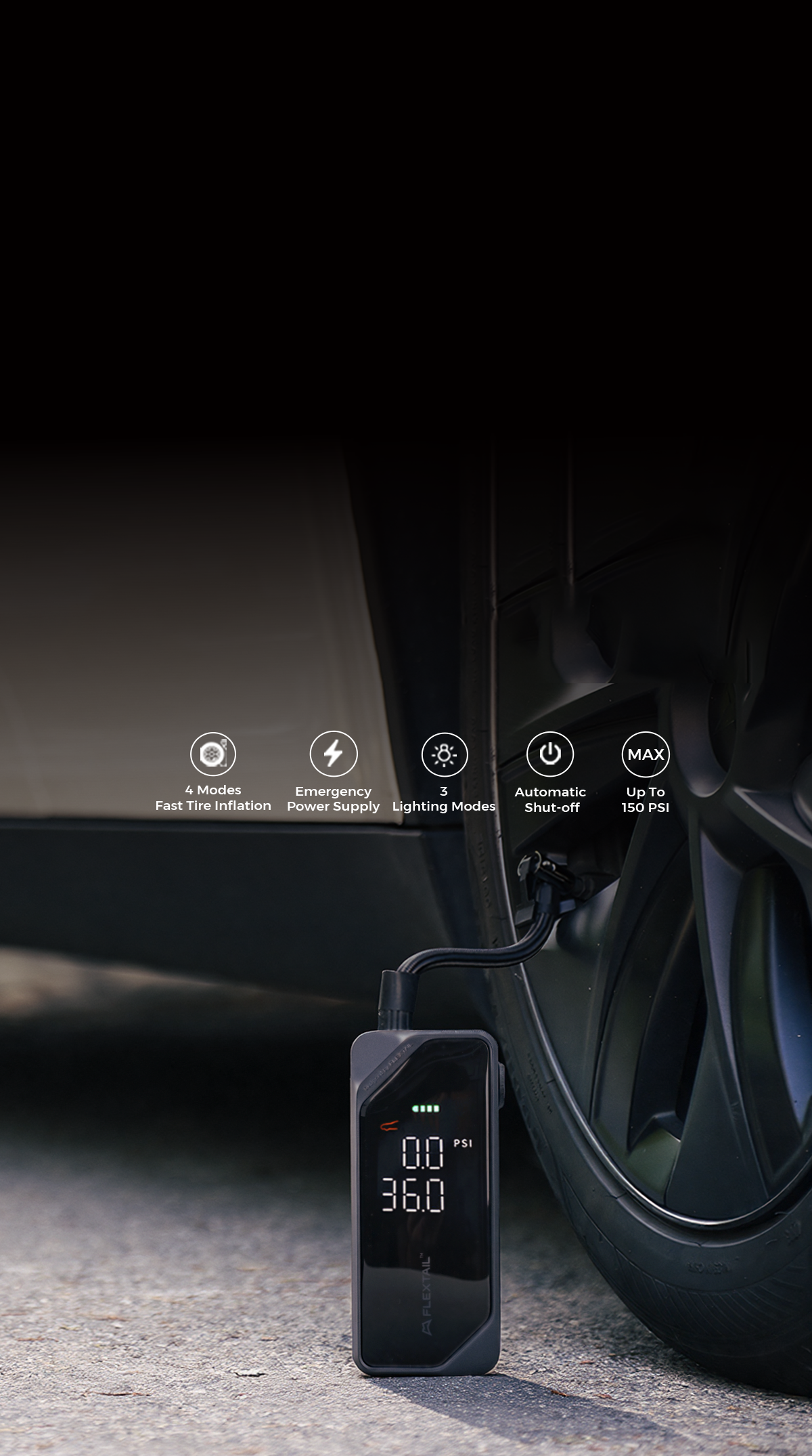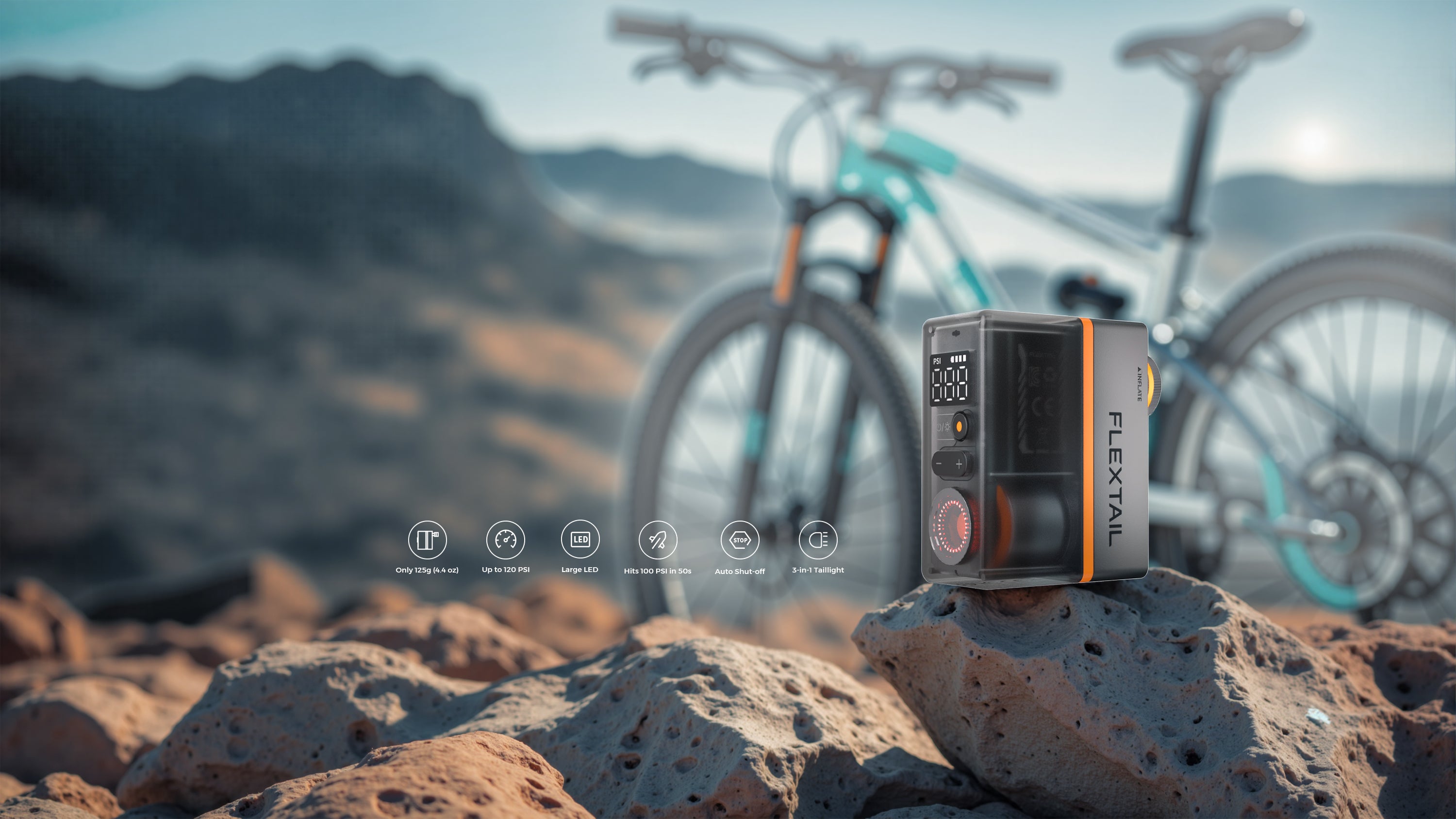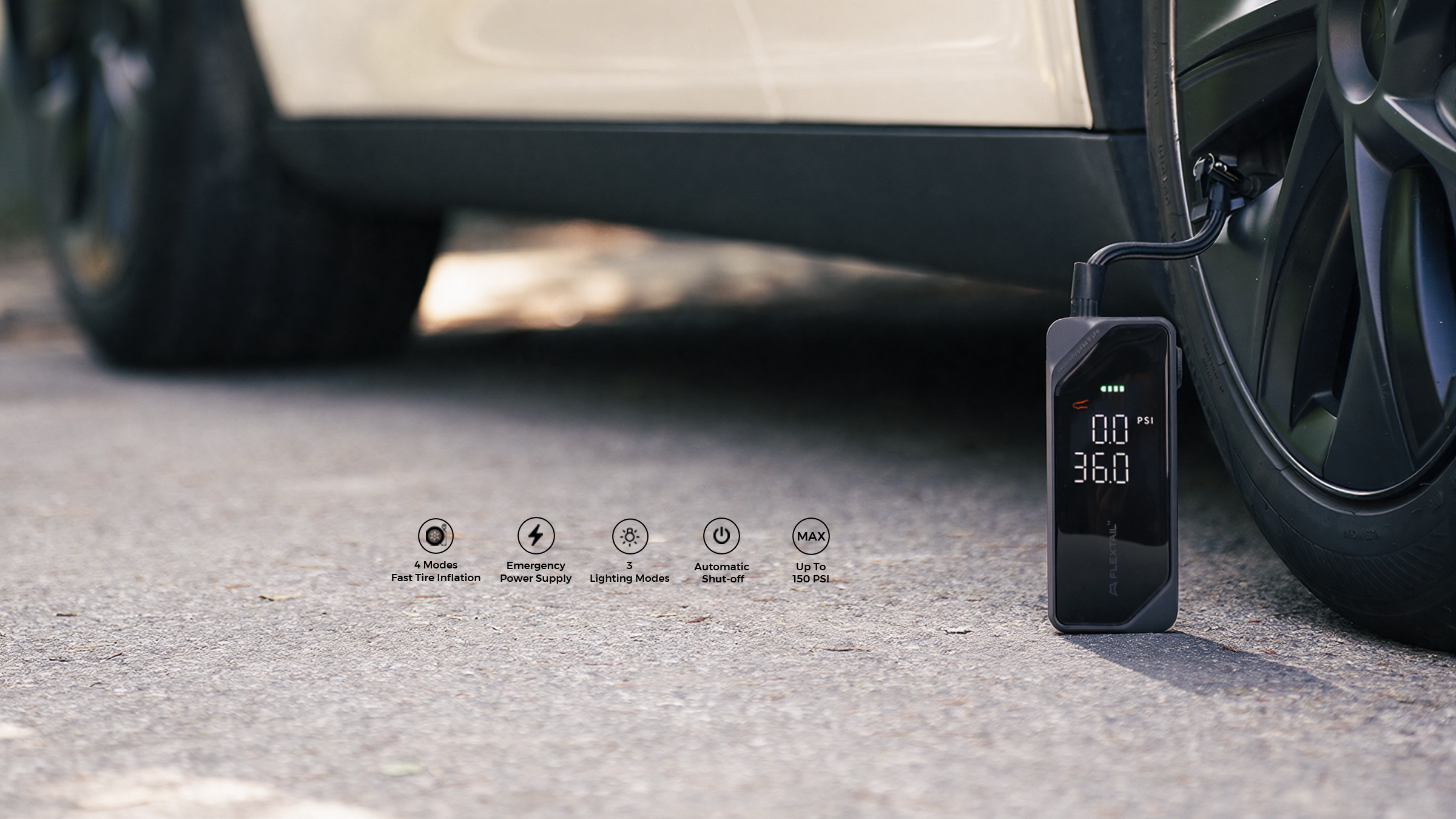 VOLLYC × FLEXTAIL EVO TIRE PUMP 150 - High-capacity 150 PSI multi-functional tire pumpVOLLYC × FLEXTAIL EVO TIRE PUMP 150 - High-capacity 150 PSI multi-functional tire pump