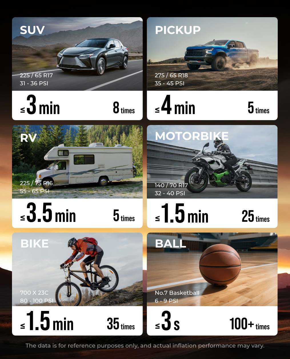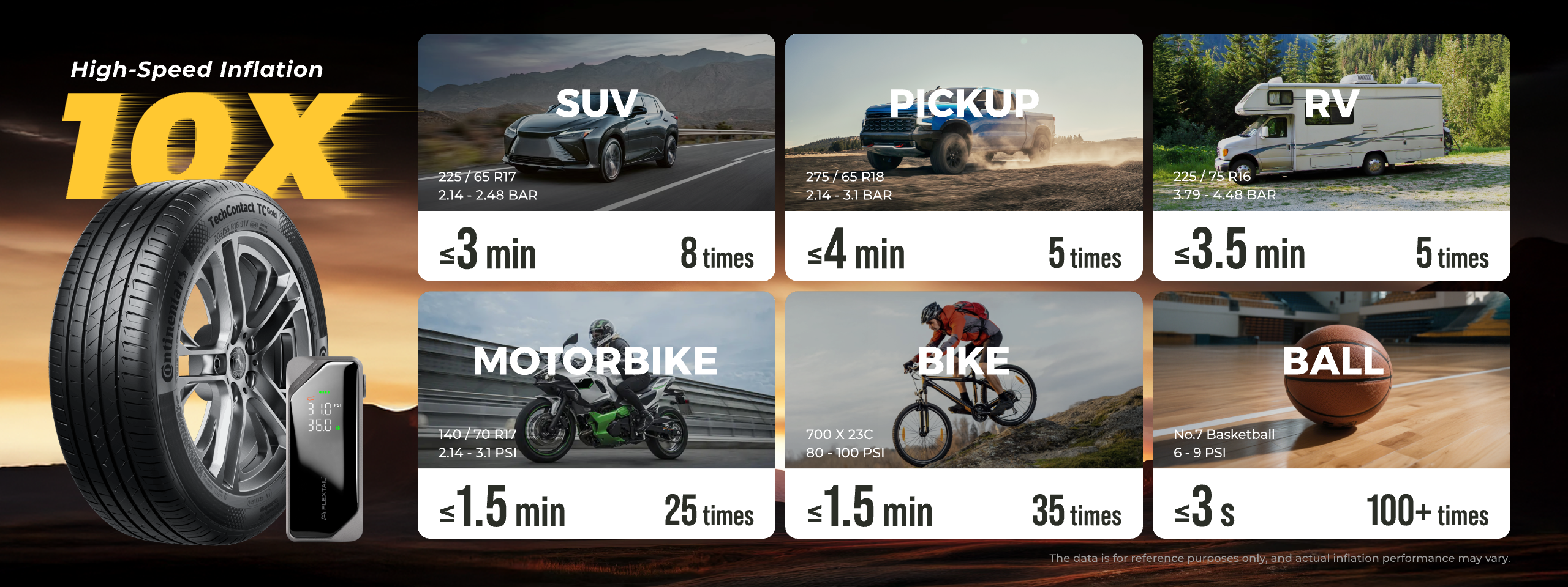 scenarios. The result? Consistently fast and stable inflation — you can trust it for any tire, anytime.