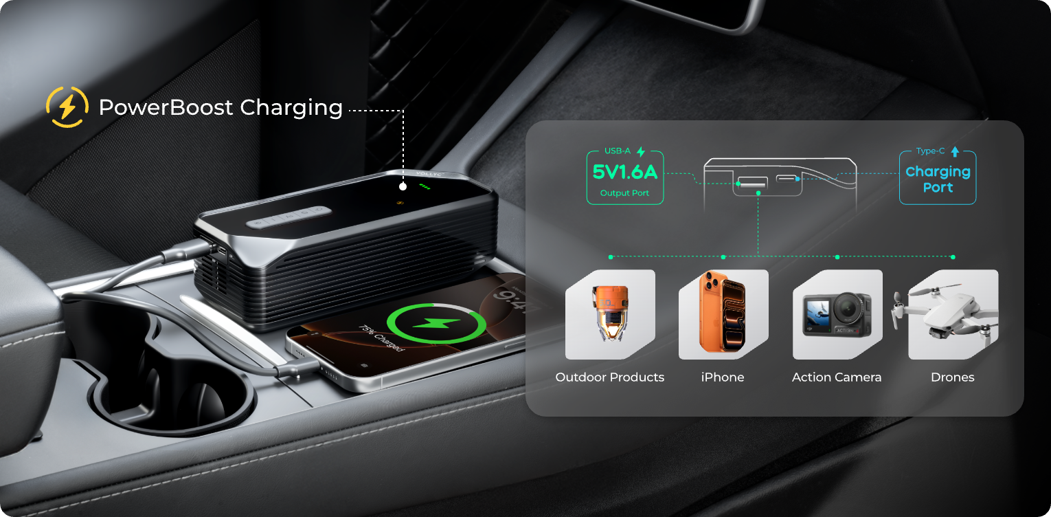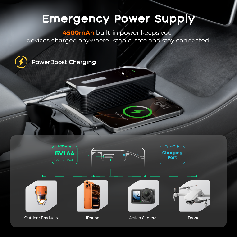 4500mAh built-in power keeps your devices charged anywhere- stable, safe and stay connected.