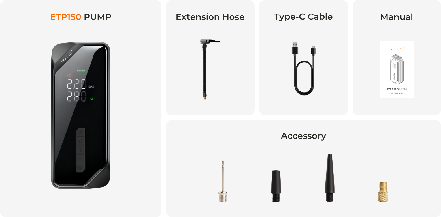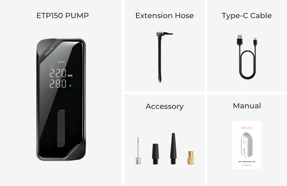 VOLLYC × FLEXTAIL EVO TIRE PUMP 150 - High-capacity 150 PSI multi-functional tire pump