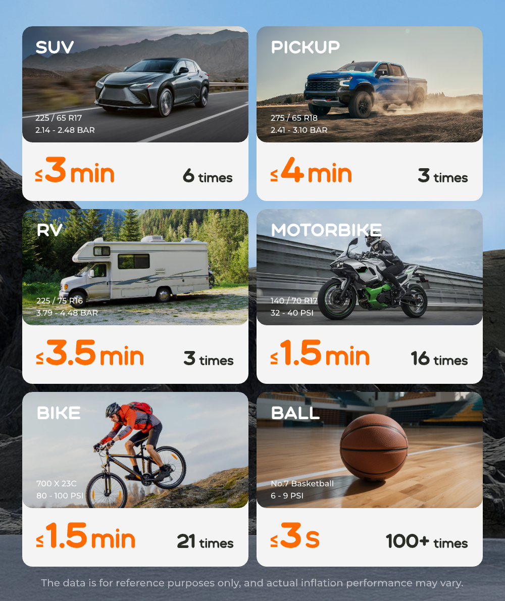 scenarios. The result? Consistently fast and stable inflation — you can trust it for any tire, anytime.