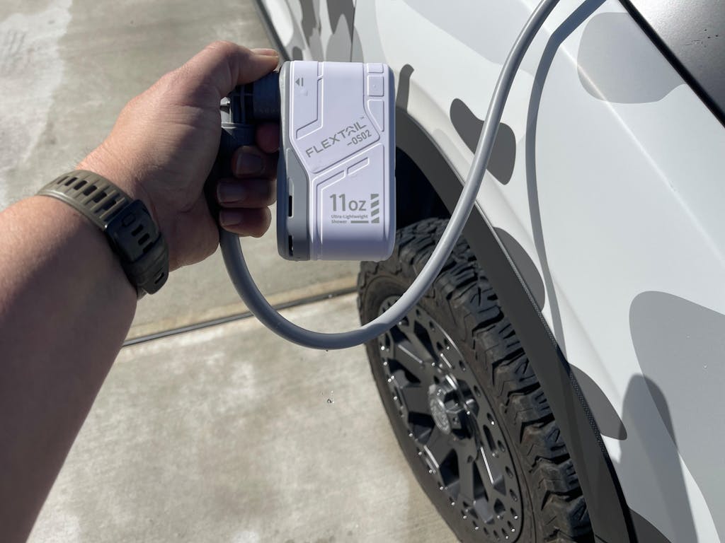 FLEXTAIL MAX SHOWER weighing only 11oz(305g). Its compact and portable design ensures you can carry it effortlessly on all your outdoor adventures. Compact system integrates a showerhead, pump and hose.
