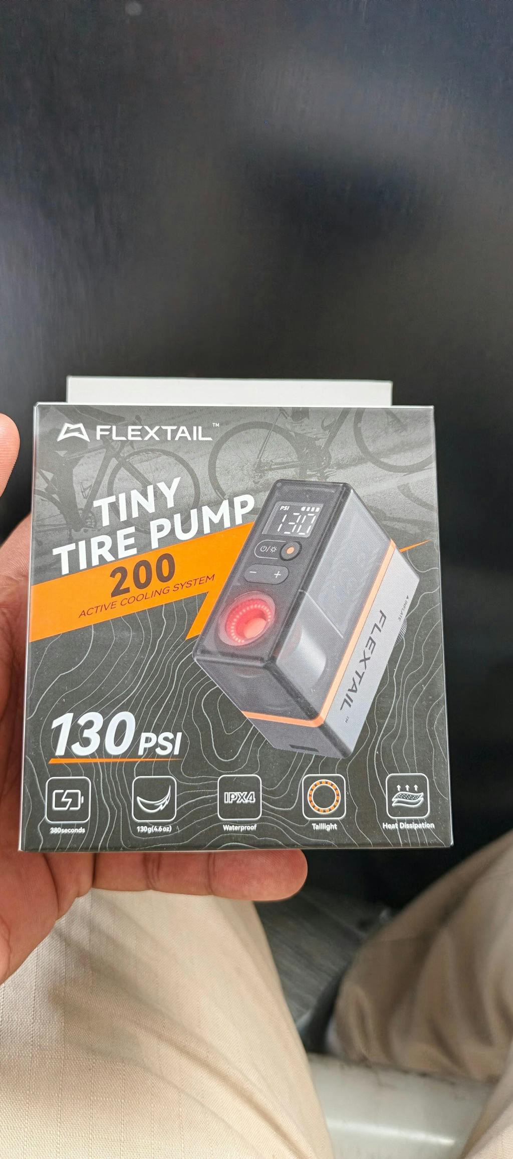 Despite its powerful performance and rich features, we have successfully reduced the weight of the Tiny Tire Pump 200 to an astonishing 130g.