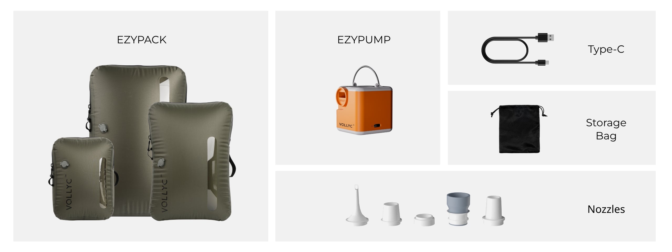 FLEXTAIL X VOLLYC EZY SET BUNDLE - 3 Size Travel Vacuum Pack For Luggage Space Saving
