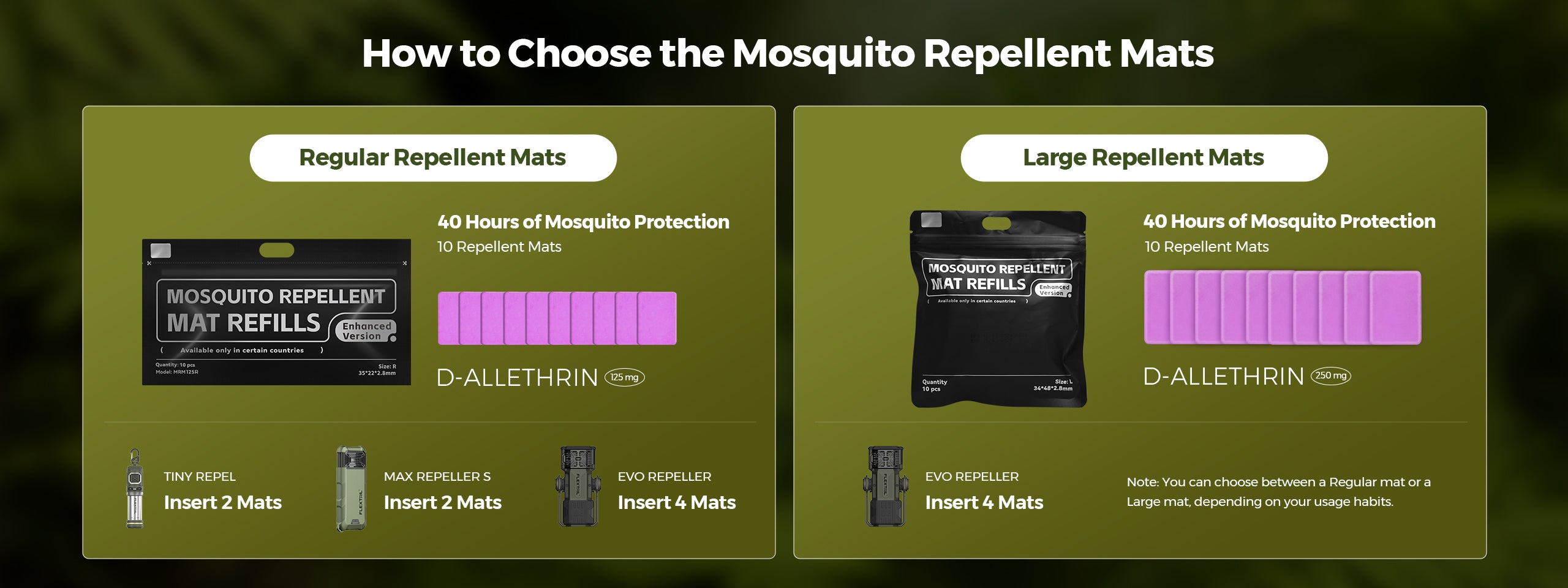 Foil-wrapped mats complement your Plug-in Mosquito repellent. A pack of 10 Mats provides up to 40 hours of protection. DEET-free, no sprays or lotions on your skin. Experience maximum defense in 50 seconds. Our Mosquito Repellent Mat is independently tested, the core ingredients are D-Allethrin, and SDS-certified for safety & effectiveness.