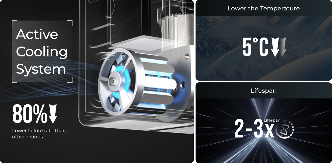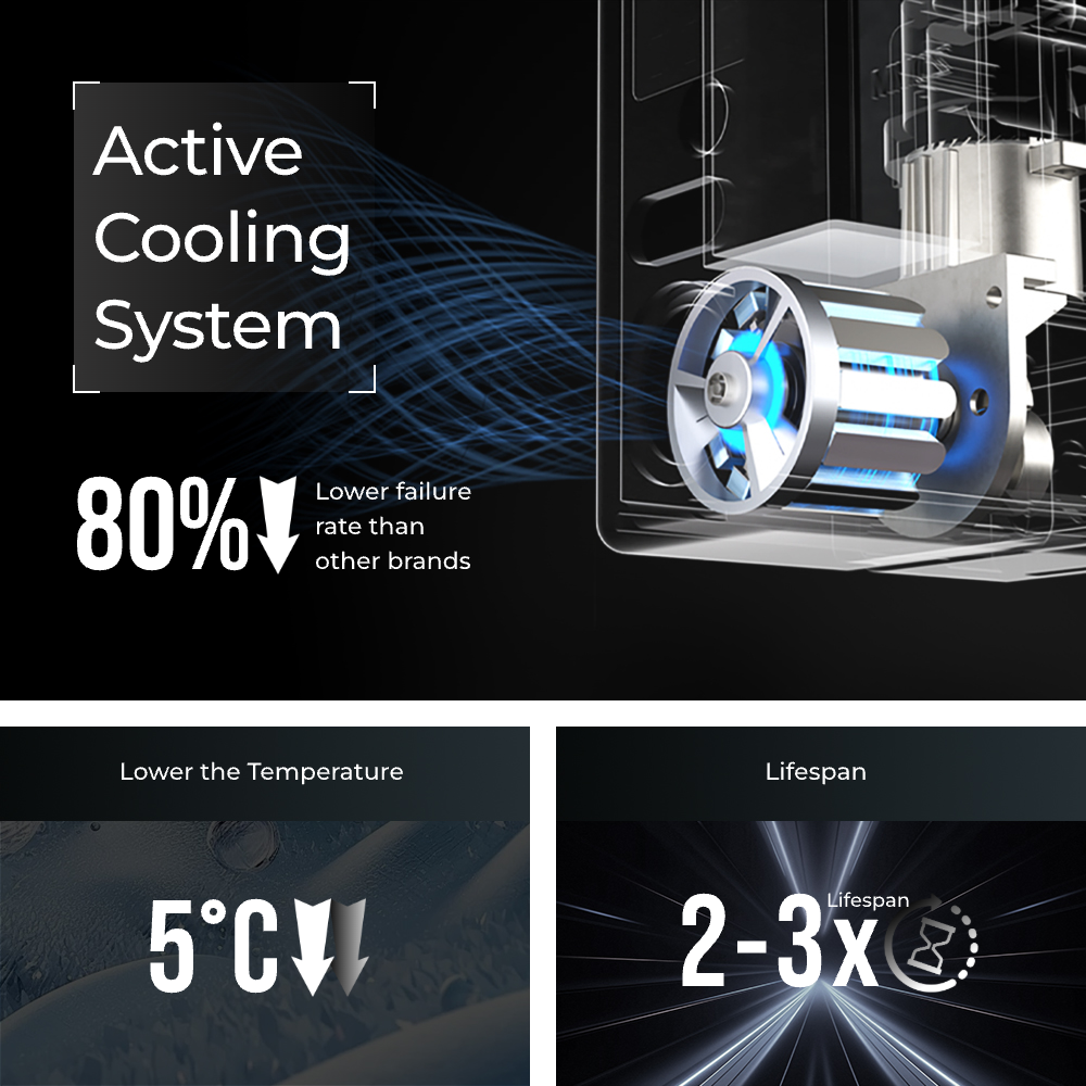 High temps kill performance. The ACS series uses a unique centrifugal cooling system to circulate heat away protecting core parts and ensuring stable, long-lasting use.