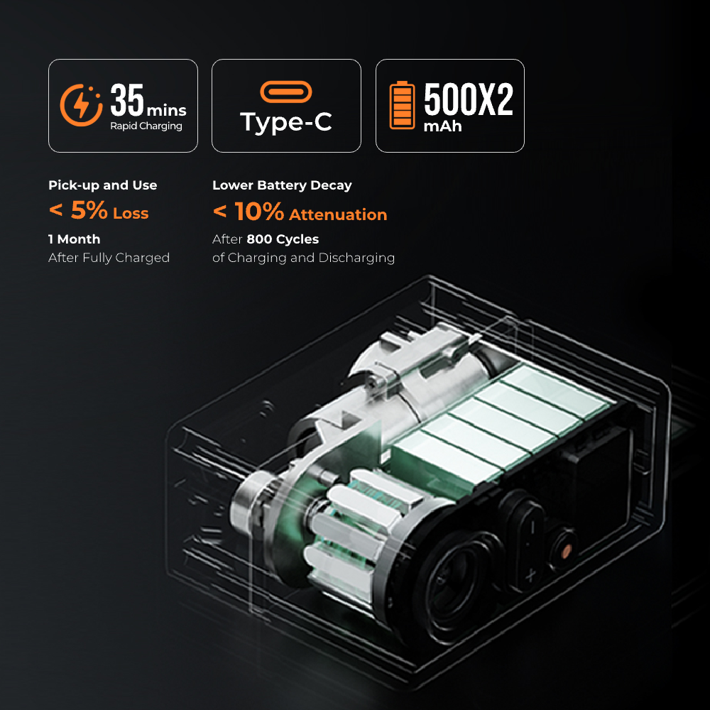 Our premium battery module is the core of its high performance. High-density battery for compact size, low power loss, and long-lasting, stable performance.