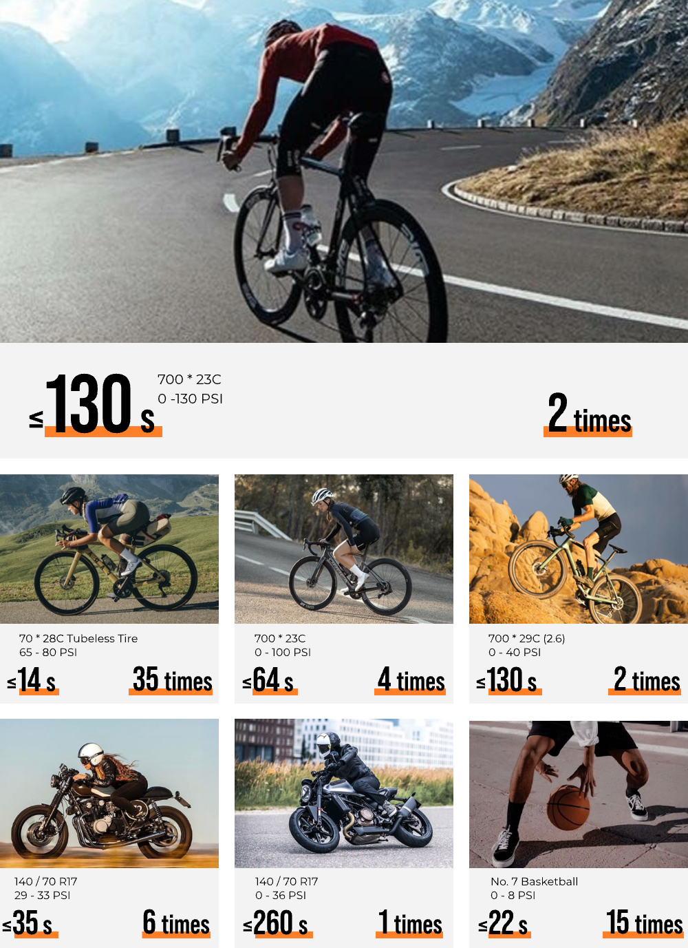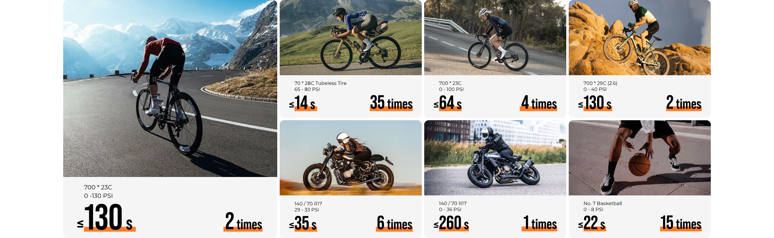 We have conducted comprehensive tests on different tire models, optimized the air pump's performance under both low and high pressure conditions, ensuring you have the best experience.