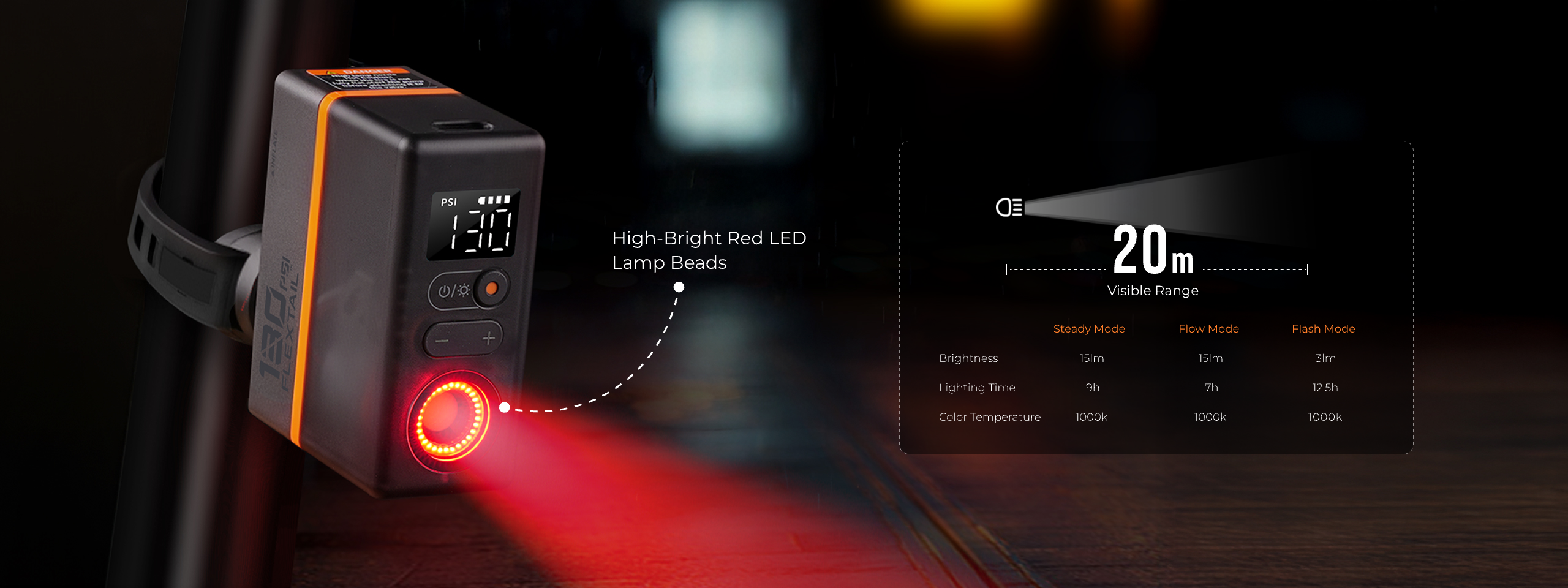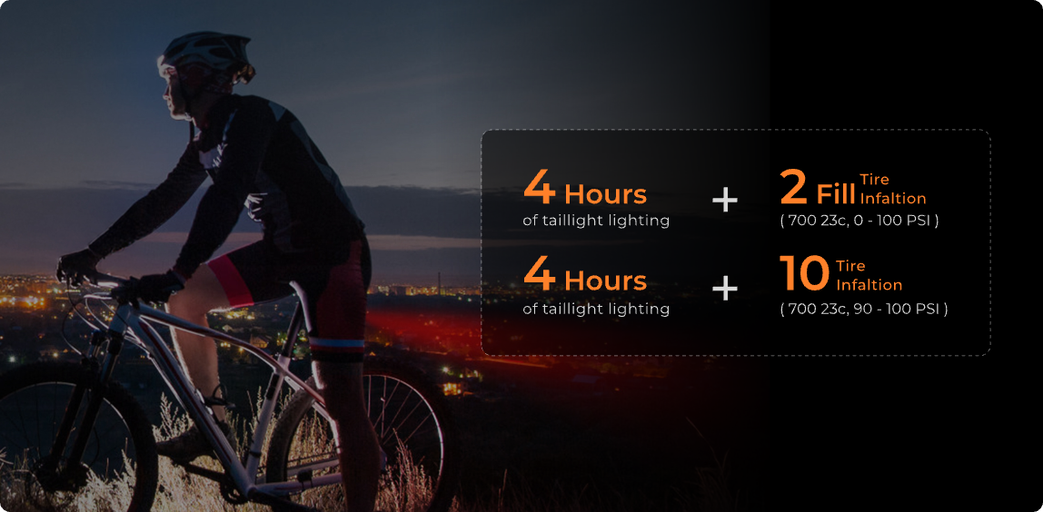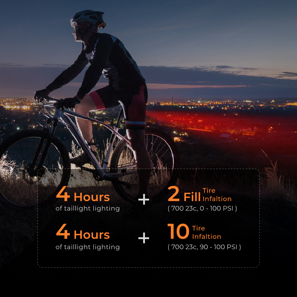Even if you use the tail light function for 4-6 hours, it only consumes half the battery of the Tiny Tire Pump 200, which is still enough to help you deal with emergencies.