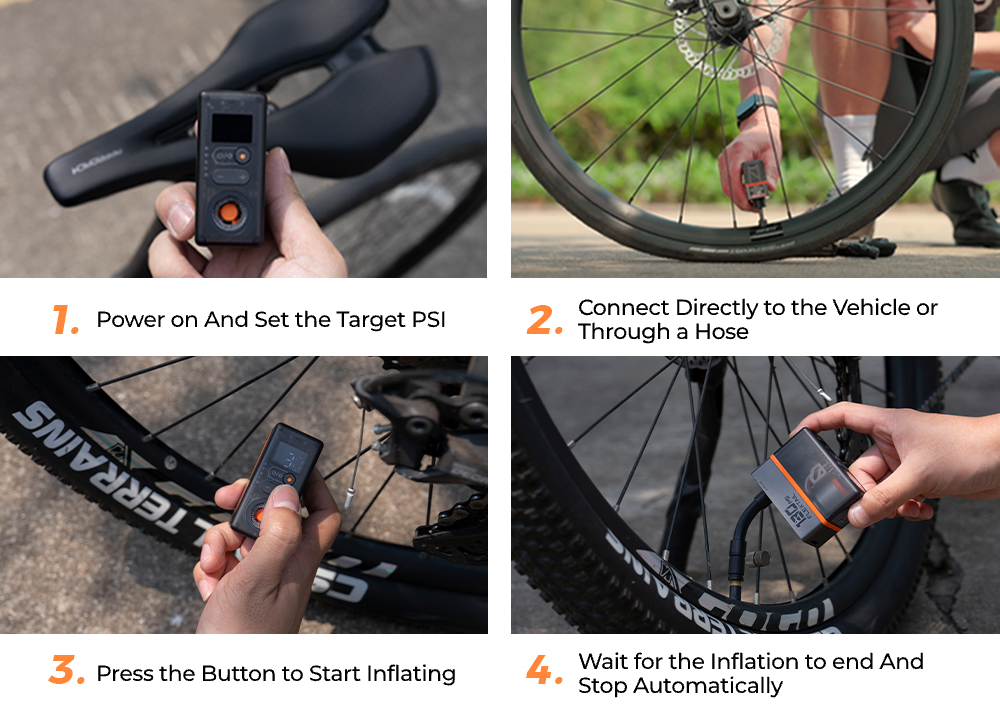 Stop counting seconds. The Tiny Tire Pump flies through inflation at double speed.Your tires are pumped before you even notice.