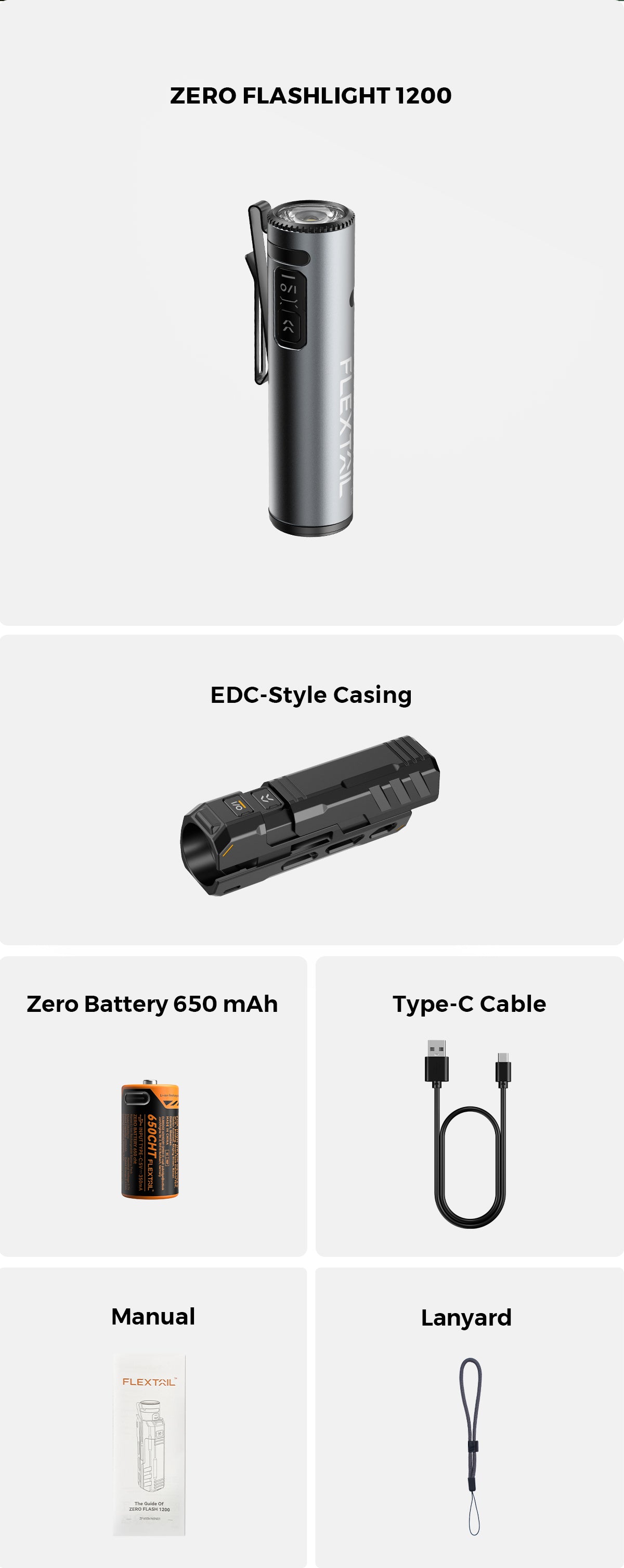 ZERO FLASHLIGHT 1200 - Ultra Light & Bright EDC Outdoor Flashlight